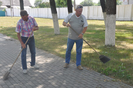 С раннего утра приступили к благоустройству у памятника погибшим воинам и партизанам, а также чистить плитку возле районной Доски почёта. А после обеда стали прихорашивать парк имени Николая Гомолко. Где нужно, заменили уличное освещение, скосили траву и подметали тротуары.