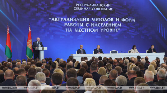 «Тема сегодняшнего семинара — это, можно сказать, рефрен всей политики нашего современного суверенного государства. Как мы его часто называем, и правильно называем, — государство для народа», — подчеркнул Александр Лукашенко.