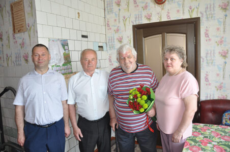 Поздравить его с этой знаменательной датой приехали заместитель председателя районного Совета депутатов Наталья Макаревич, начальник отдела организационно-кадровой работы райисполкома Сергей Ахрамович и инженер по комплектации ПМК-97, где работал юбиляр, Леонид Купрацевич.