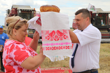 По этому случаю прямо на поле организовали праздник для хлеборобов.