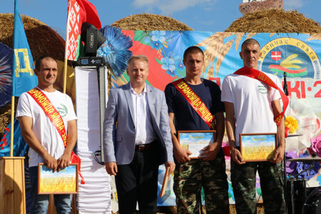 С уборочной площади 1785 гектаров при урожайности 27 центнеров в «Приозёрском-Агро» собрали более 4800 тонн зерна и около 700 тонн ярового рапса. Такой весомый каравай – итог образцовой организации труда, использования современных агротехнических технологий, самоотдачи каждого члена коллектива. Особые слова благодарности – комбайнерам-тысячникам. Впервые в истории предприятия сразу три экипажа намолотили более тысячи тонн зерна. Александр Барышников отдельно отметил труд комбайнеров Александра Купрацевича, Вячеслава Юхневича, Вадима Макаревича.