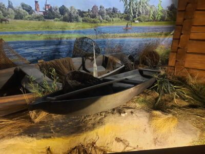 Ещё одна особенность сооружения – размещение скамеек внутри челна. Здесь между ними определено расстояние – два метра. Не менее важно и хранение речного транспорта. Как и сто лет тому човен лучше держать на реке. Его даже на зиму разумнее оставить подо льдом, чем пришвартовать у берега.