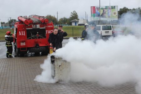 Было чаму здзіўляцца пакупнікам і персаналу крамы, калі на іх вачах, нібы запалка, успыхнула газавая пліта, якую прывезлі з сабою супрацоўнікі райаддзела па надзвычайных сітуацыях. Людзі ў форме не разгубіліся, інспектар Фёдар Дудзіч імгненна патушыў полымя, прымяніўшы вогнетушыцель. Але выратавальнікі зноў стварылі пажар на кухонным інвентары, прапанаваўшы справіцца з ім прахожым. Тыя заданне ўспрынялі з ахвотай, прадэманстравалі, што умеюць спраўляцца з дапамогай вогнетушыцеля з узгараннямі не горш за спецыялістаў адпаведных службаў. За гэта яны атрымлівалі ў якасці прызоў прафілактычныя буклеты. Людзі ўдзельнічалі і ў віктарынах, уважліва слухалі рэкамендацыі спецыялістаў. За правільныя адказы атрымлівалі прызы.