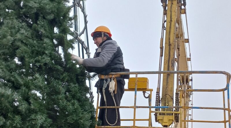 Праздник к нам приходит! Сегодня в Житковичах устанавливают главную ёлку района. Высота зелёной красавицы 14 метров. Ещё одно новогоднее дерево