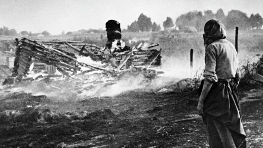 В марте 1943 г. немцы в д. Ляховичи сожгли 47 мирных граждан, 6 – расстреляли, подожгли деревню. Немецкие солдаты смеялись, фотографируя горящие дома.