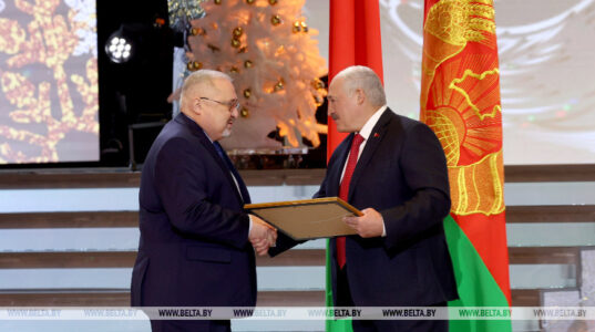Глава государства отметил, что сегодняшний вечер является продолжением самого светлого, самого семейного и красивого праздника Рождества. «Премии, которые ежегодно вручаем в эти зимние дни, — дань исконным традициям, связывающим эпохи и поколения. Дань духовной силе белорусов — мудрых, трудолюбивых, любящих родную землю и почитающих предков», — сказал белорусский лидер.