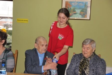 Особым вниманием и заботой окружили в этот день людей золотого возраста. Это особая категория жителей нашего района – ветеран Великой Отечественной войны, заслуженные педагог, воспитатель, врач, агроном, инженер: Владимир Киселёв, Галина Дыбаль, Светлана Степаненко, Анатолий Гулюта, Галина Крот, Татьяна Атаманчук, Вера Глыгина, Михаил Некрашевич, Вера Изместьева, Светлана Браим, Нина Мельникова – они славили наш край и приумножали его богатство своим трудом. Им от дорогих гостей – самые тёплые пожелания, благодарность за труд и хороший жизненный пример, музыкальные номера и подарки от Министерства природных ресурсов и охраны окружающей среды Республики Беларусь, районного исполнительного комитета, территориального центра социального обслуживания населения.