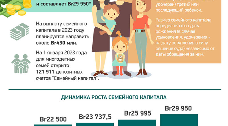 Read moreРазмер семейного капитала в Беларуси с 1 января 2023 года увеличился на 15,2 % и составляет Br29 950*. Семейный капитал