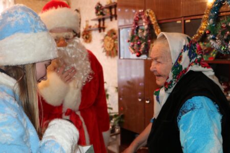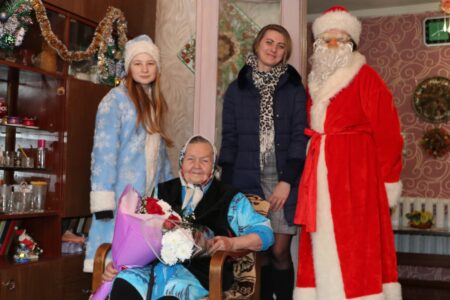 Лидер районной организации БРСМ Елена Козик и союзная молодёжь Люденевичской СШ навестили жительницу агрогородка Софью Яковлевну, которой сегодня исполнилось 95 лет.