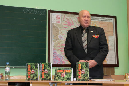 — Презирая опасность, мобилизовав волю и силы, бойцы невидимого фронта без остатка отдавали себя приближению победы над фашистской Германией. И этим снискали уважение, заслужив вечную славу, — отметил автор книги, заслуженый журналист Беларуси, уроженец нашего города Михаила Хильман. Он рассказал ученикам школы, что собрал под одной обложкой информацию о всех группах и отрядах, которые по заданию центра в глубоком партизанском подполье вели неравный бой с немцами.