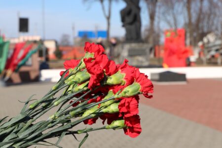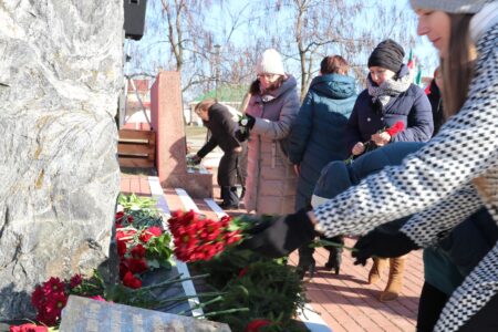 Представители трудовых коллективов и молодёжь почтили память героев минутой молчания и возложили цветы.
