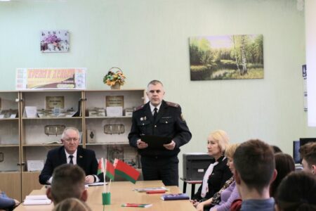 На встречу пригласили идеологических работников предприятий и организаций, учащихся государственного колледжа, их педагогов. Главной темой общения стала история Конституции страны. Спикерами выступили председатель районного Совета депутатов Владимир Кулеш и заместитель начальника РОВД Владимир Василенко.
