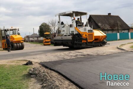 Бригада ДСУ-21 за пять часов рабочего времени сегодня уложила асфальт на улице Кирова в Житковичах.