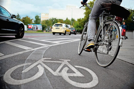- при наличии на проезжей части дороги линии горизонтальной дорожной разметки, обозначающей ее край, эта линия должна располагаться слева от велосипедиста.