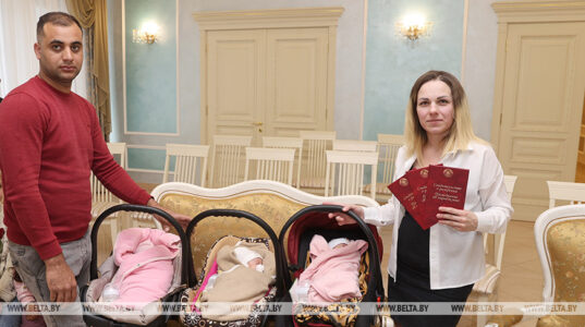 Как отметила начальник отдела ЗАГС администрации Новобелицкого района Гомеля Анна Мишина, это первая тройня в Гомельской области с 2020 года, в Новобелицком же районе такое событие не случалось с 2012-го. На церемонии регистрации она пожелала семье светлого будущего, мира, любви и согласия.