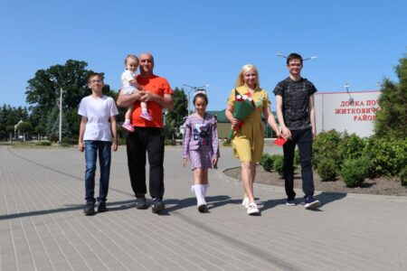 Счастье этой семьи простое — четыре сыночка и лапочка дочка. 23-летний Валерий уже выпорхнул из родных пенат, в одной из воинских частей обучает солдат вождению. Летом Алексею исполнится пятнадцать, Илье стукнет двенадцать, Леночка отметит восьмой день рождения. А самому младшему парнишке Сашеньке в декабре минул годик. Профессия Надежды — продавец, её супруг Андрей трудится лесником Житковичского лесничества ЭЛОХ «Лясковичи». Свидетелями торжественного момента стала вся семья, за исключением старшего ребёнка.