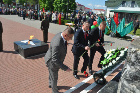 Отдать дань памяти и уважения тем, кто мужественно сражался в боях и тем, кто не вернулся с поля боя, пришли руководители и специалисты районного исполнительного комитета, представители общественных организаций и объединений, духовенства, руководители и трудовые коллективы предприятий, организаций, ведомств и служб, житковчане и гости города.