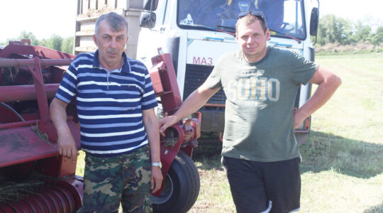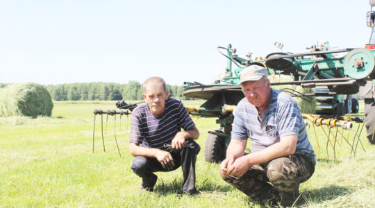 — Травастой няважны, але за дзень тон 120-150 выдаю, — расказвае Мікалай. — Плошчы, дзе развярнуцца, хапае: травы ў валкі паклаў Мікалай Хільман, а пастаянна іх падварушвае з граблямі Станіслаў Козел. Дастаткова тэхнікі і на адвозцы. Таму і прастояў не маецца.
