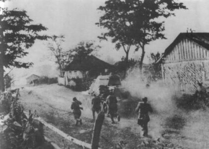 На территории района действовали партизанские бригады 25-я имени П.К.Пономаренко, 50-я Житковичская, 123-я имени 25-летия БССР, 130-я Петриковская, 225-я, имени С.М.Буденного и имени С.М.Кирова, партизанские отряды Давид-Городокский, П.А.Дудаля, И.И.Чуклая, Туровский и “Храбрецы”. С первых дней оккупации в Житковичском районе сражалась с врагом подпольная организация из военнослужащих и местных активистов. Возглавлял ее инженер Е.Горев, после его гибели — Иосиф Гарбуз. Их боевыми помощниками были Григорий Коровченко, Николай Корж, Александр Купрацевич, Василий Рыбалко, Степан Татур, Алима Кирбай и др. При их участии был создан Житковичский партизанский отряд, переформированный впоследствии в партизанскую бригаду (№ 50), которой командовал Владимир Иванович Глущеня. Бригада подорвала много паровозов, автомашин, вагонов с живой силой и боевой техникой, уничтожила более 3000 гитлеровцев. Район был освобожден войсками 1-го Белорусского фронта в ходе наступления на Лунинецком направлении. Городской поселок Туров (оккупирован 14.07.1941 г.) освобожден 5.07.1944 г. частями 23-й стрелковой дивизии 89-го стрелкового корпуса 61-й армии во взаимодействии с 1-й бригадой речных катеров Днепровской речной флотилии. Город Житковичи (оккупирован 20.08.1941 г.) освобожден 6.07.1944 г. частями 55-й стрелковой Мозырской дивизии. … В ходе наступления части 55-й стрелковой Мозырской дивизии восточнее г. Житковичи натолкнулись на сильное сопротивление врага. 107-й стрелковый полк совершил обходной маневр с севера, а 111-й — с юга. Во взаимодействии с 228-м стрелковым полком они начали сжимать кольцо окружения. Враг отступил с большими потерями. 6 июля город и железнодорожная станция Житковичи были освобождены. Попытки противника остановить наступление дивизии по р. Случь также не увенчались успехом. 7 июля все части вышли к реке и, подавив огонь артиллерии, ночью форсировали водную преграду, а в 2 часа 30 минут 8 июля овладели населенным пунктом Микашевичи.