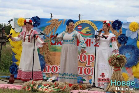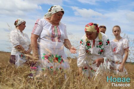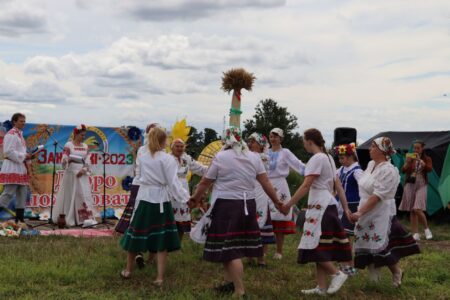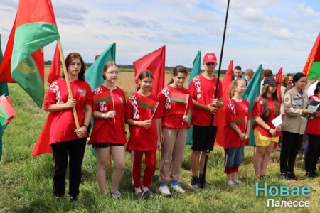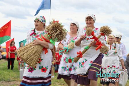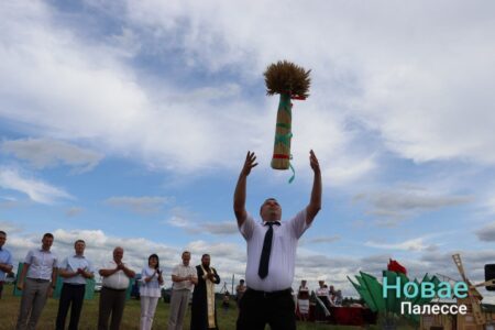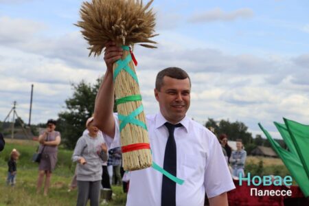Обряд «Зажинки» провели на поле в КСУП «Белев». Снопы из первых сжатых колосьев вручили председателю районного исполнительного комитета Николаю Пьявко.