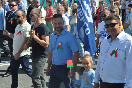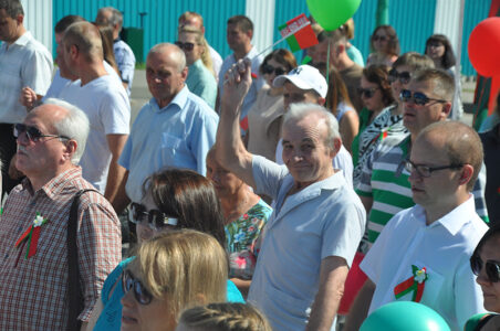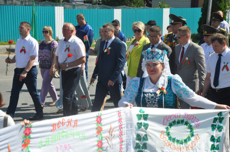 В Житковичах сегодня прошло торжественное шествие в честь Дня Независимости, в котором приняли участие ветераны, трудящиеся и творческая молодежь.