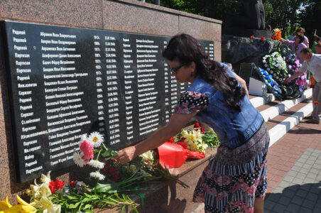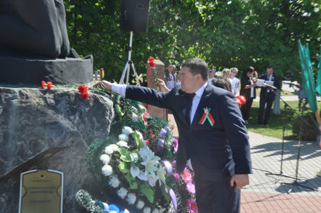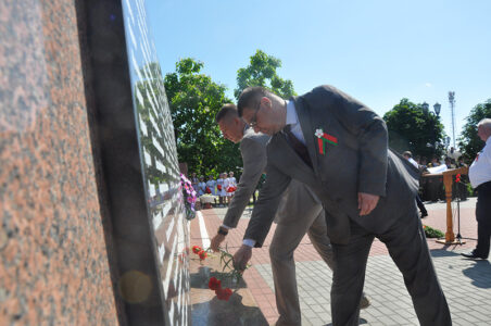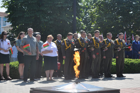 Удзельнікі мітынгу ўсклалі вянкі і кветкі да помніка і ўшанавалі хвілінай маўчання тых, хто не шкадуючы сваё жыццё абараніў нашу краіну.