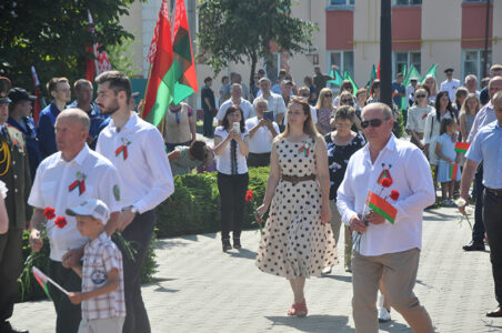 Сотні гараджан і гасцей, кіраўніцтва раёна, прадстаўнікі прадпрыемстваў, арганізацый, навучальных устаноў, грамадскасць, людзі старэйшага пакалення і маладыя сем’і з дзецьмі пранялі удзел у святкаванні Дня Незалежнасці.