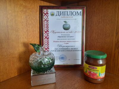 Предприятие признано победителем конкурса консервированной продукции «Хрустальное яблоко-2023». Диплом в номинации «Фруктовые консервы» заслужило повидло яблочное стерилизованное. Участники закрытой дегустации признали эту продукцию лучшей.