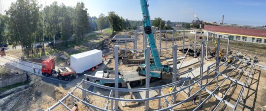 Она обеспечит теплом и горячей водой не только посёлок, но и агрогородок Семенча. Сегодня на объекте монтажники при помощи высотного крана устанавливают котлы. Всего их три, вес каждого – 47 тонн.