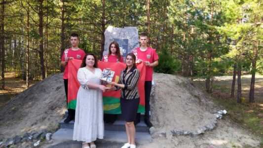 Передача флага от Житковичского РК Лельчицкому РК состоялась на границе районов у памятного знака воинам 117-го и 98-го стрелковых полков.