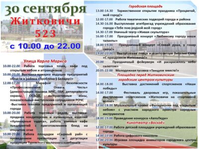Программа праздничных мероприятий, посвящённых Дню города Житковичи, «Живи ярко, любимый город»