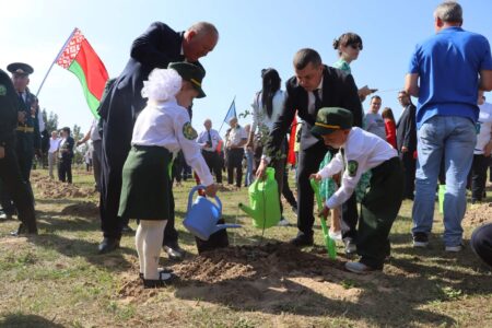 Сквер народного единства заложили сегодня в агрогородке Ленин участники патриотической акции «Символ единства»