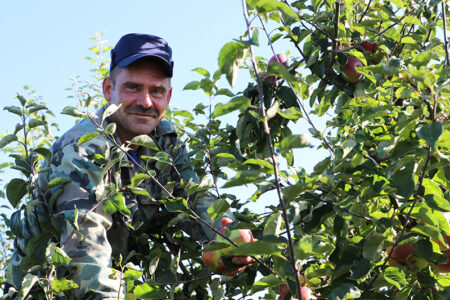 — У нас выращивается около 25 сортов, преимущественно отечественной селекции, — даёт раскладку садовод хозяйства Василий Зырко. – Первыми убрали фрукты раннего срока созревания, сейчас очередь осенне-зимних. Всего деревьями на среднерослых подвоях занято 200 гектаров, посадочная площадь составляет 165 га. Урожай мог быть и лучше, но, думаю, соберём не меньше прошлогоднего.