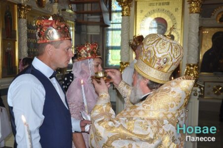 Епископ Туровский и Мозырский Леонид поздравил супругов с важным событием в их жизни, призвал их хранить любовь и верность всю жизнь.