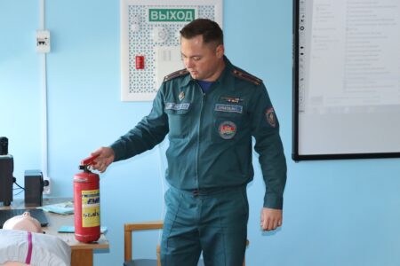 Помимо основных причин пожаров в быту и алгоритма действий, отмечены вопросы обеспечения безопасности и на объекте: заместитель начальника РОЧС напомнил работникам о правилах пользования первичными средствами пожаротушения, рассказал о принципе работы пожарной сигнализации и как запустить систему вручную.