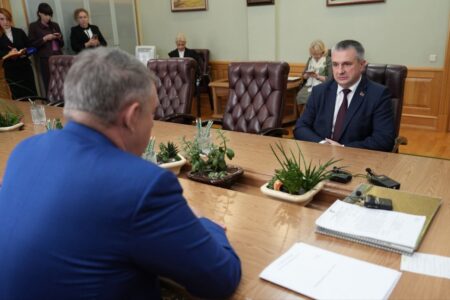 Председатель Гомельского облисполкома Иван Крупко и губернатор Брянской области Александр Богомаз провели переговоры перед началом регионального бизнес-форума «Брянск-Гомель».