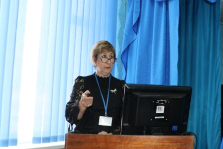 Затем заместитель директора по воспитательной работе этого учреждения Алла Евстратова познакомила аудиторию с опытом гражданско-патриотического воспитания, рассказав о деятельности детских общественных объединений, краеведческой работе, Школе Активного Гражданина (проект ШАГ), издании ежемесячной гимназической газеты «Эверест» и других направлениях.