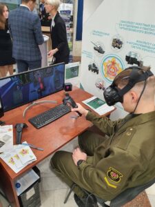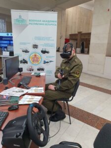 Также от Военной академии были представлены экспонаты: виртуальный процедурный тренажер бортового комплекса оборудования самолета ЯК-130 и виртуальный симулятор бронетранспортера БТР-82А.