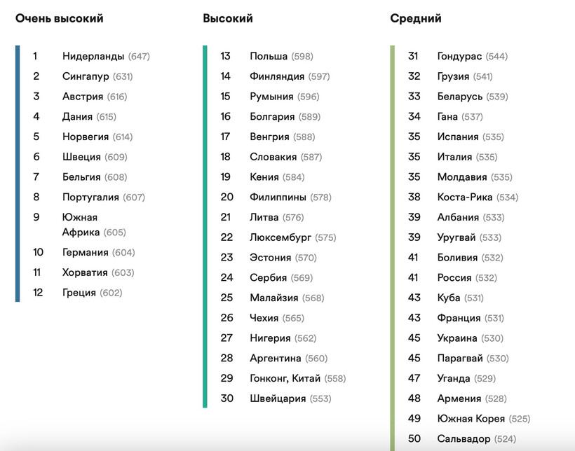 Но и у белорусов явный прогресс. В 2019 году мы были на 47-м месте (низкое знание английского), в 2020 году — на 40-м месте, а в 2023-м поднялись до 33-й строчки. Это уже крепкий средний уровень.