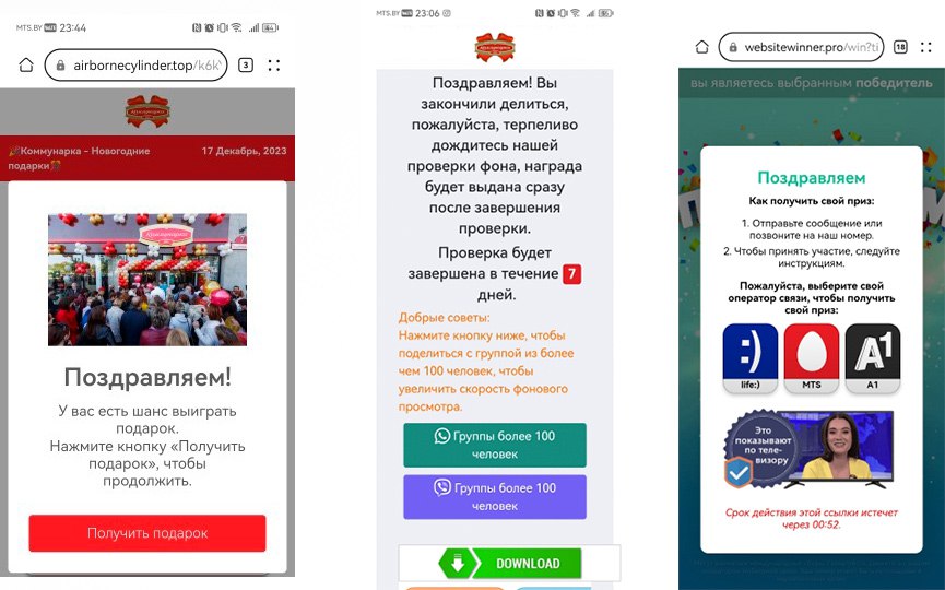 На нескольких сайтах мошенники от имени «Коммунарки» проводят розыгрыши призов. На сайте размещен логотип предприятия и текст, призывающий участвовать в рождественской акции. Пользователям при нажатии на ссылку предлагается перейти на следующую страницу и якобы получить подарок.