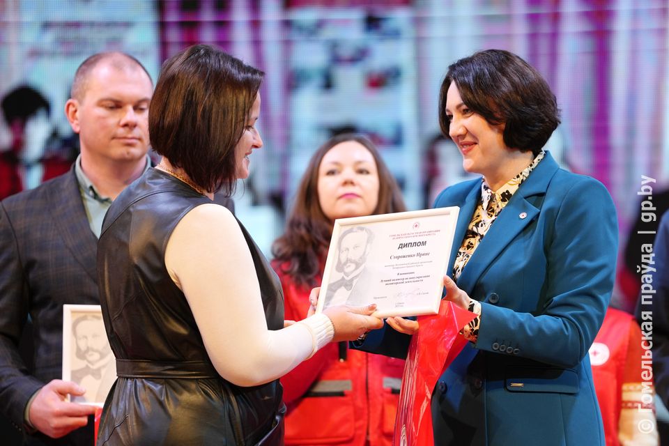 Лучшим волонтером по работе с детьми стала Мария Гушляк – доброволец из Мозырского района. Лучший волонтер команды медико-социальной службы Красного Креста «Дапамога» – Малова Ангелина, Советский район Гомеля. Лидером в распространении знаний о Белорусском Красном Кресте и международном гуманитарном праве признали Наталью Малюк – добровольца Светлогорского района. Первый среди руководителей волонтерской группы на предприятии ОАО «ГЗЛиН» – Иван Дусенок, представитель Железнодорожной районной организации Гомеля БКК. Лучший руководитель волонтерской группы в учреждении образования – Ольга Крятова, волонтерская группа Гомельского колледжа связи. Лидером среди волонтерских групп признана группа ОАО «Гомсельмаш» под руководством Марины Костяной. Лучшие результаты в популяризации волонтерской деятельности показала Ирина Стороженко – волонтер из Житковичского района. Волонтер года по обучению населения навыкам оказания первой помощи – Мария Терешкова, Жлобинский район. Самым активным волонтером серебряного возраста стала Лариса Чернецова (Добрушский район). Лучший волонтер по связям с общественностью – Наталья Пачицкая из Речицкой районной организации БКК.