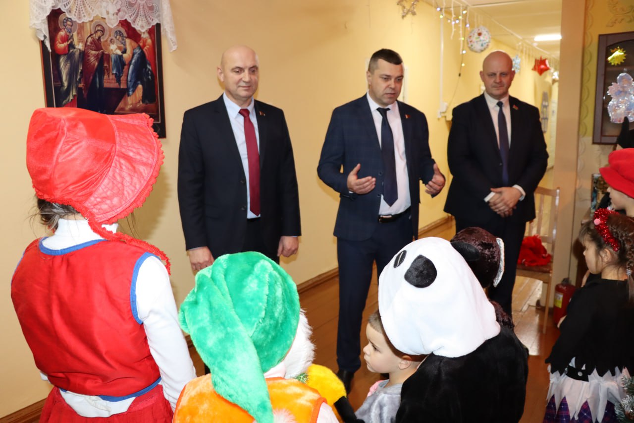 Гостей они ждали. Приготовили костюмы и стихотворения. С удовольствием потанцевали с мультяшными Крокодилом Геной, Чебурашкой, Старушкой Шапокляк и почётными гостями. Подарки и хорошее настроение детишкам, находящимся в социально-педагогическом центре, принёс председатель районного исполнительного комитета Николай Пьявко и, конечно же, Дед Мороз со Снегурочкой .