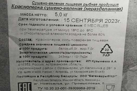 Органами санитарно-эпидемиологической службы Беларуси пресечено обращение на территории страны небезопасной рыбной продукции – сушено-вяленой красноперки, произведенной в Астраханской области (Россия), сообщили в Республиканском центре гигиены, эпидемиологии и общественного здоровья.