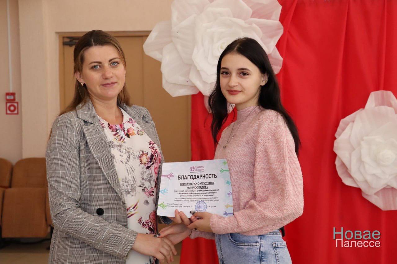 Елена Козик отметила благодарностями лучшие волонтёрские отряды района: «Милосердие» СШ №3, «Радуга» СШ № 2, «Милосердие» СШ №1, «Доброе сердце» гимназии г. Житковичи, «Милосердие» Житковичского колледжа.