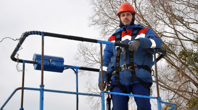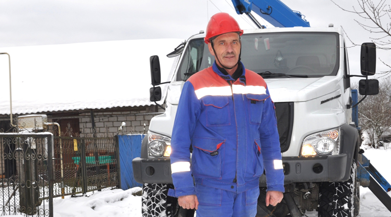 — В бригаде четыре человека: водитель автовышки Александр Швец и электромонтёры Сергей Левковец и Иван Кулыба, — посвящает в тонкости структуры Валентин Гулюта, уточняя: — Здесь работаем по замене вводов, помогая другой бригаде. В нашей компетенции — район больше. Десять сельсоветов и 104 населённых пункта — немало. Занимаемся заменой светильников, ламп.