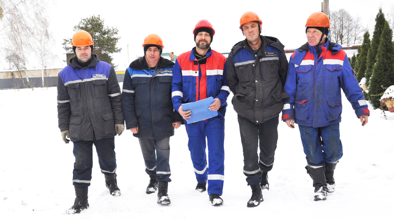 Эту бригаду мы встретили на улице Южной в снежный день за странным на первый взгляд занятием. Однако выяснилось, что оно имеет чёткое определение: «Расчистка трассы воздушной линии ВЛ-04кВт от зарослей кустарника». А вообще на счету специалистов девять капитально отремонтированных подстанций, освещение микрорайона Житковичи-10. И угадайте, кто порадовал нас автономной иллюминацией к Новому году на ул. Социалистической?