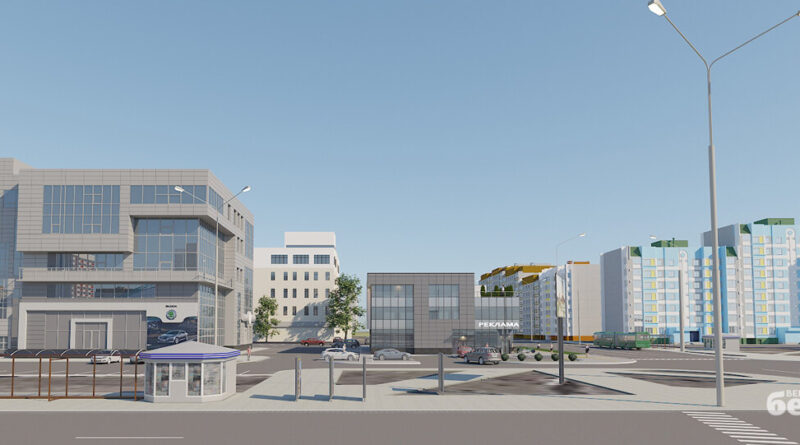 Торговый центр с кафе на крыше построят в Советском районе. Проект трехэтажного здания в стекле и керамограните с эксплуатируемой кровлей