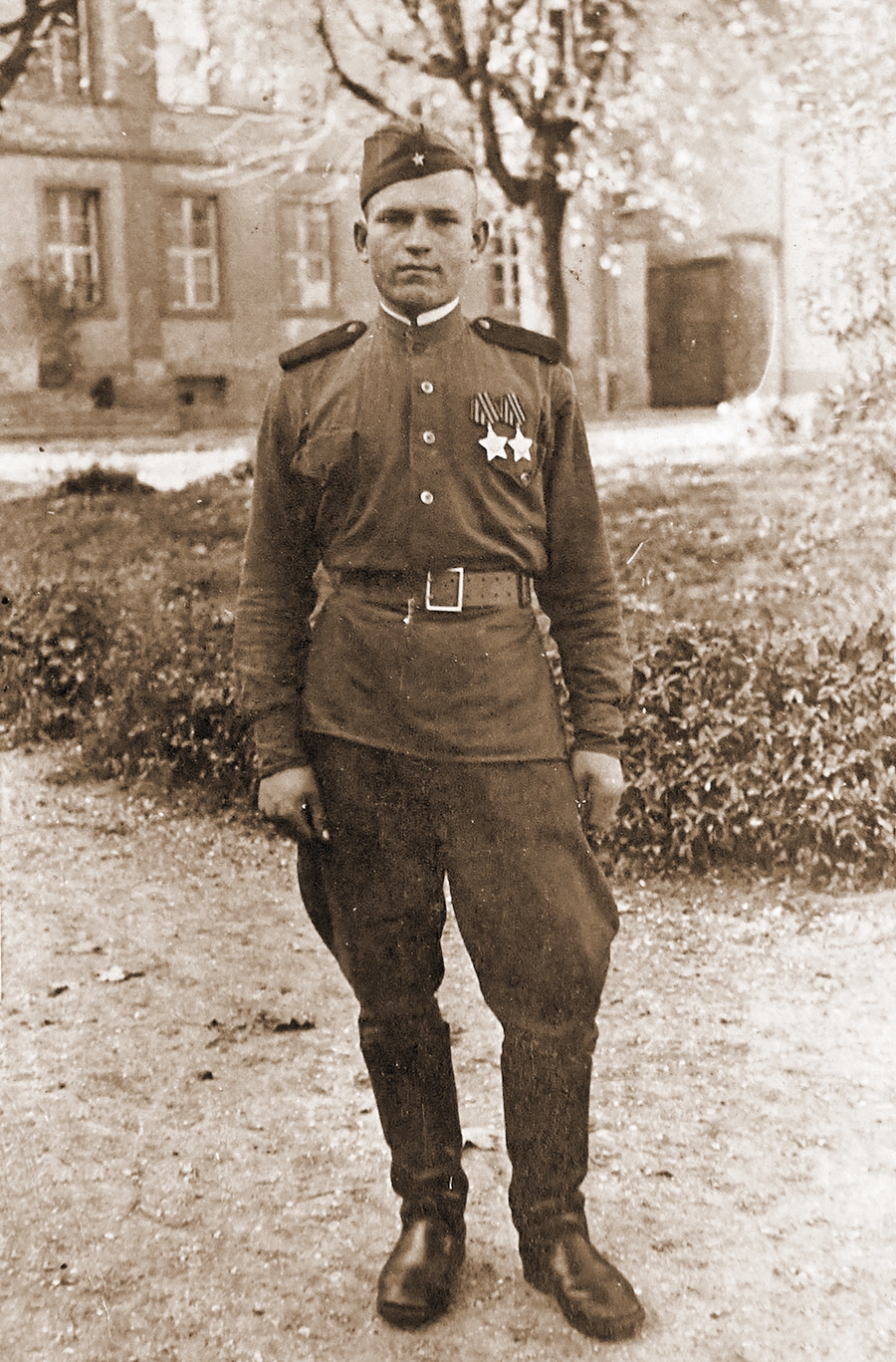 С Прибалтики их часть расформировали и перекинули под Варшаву – повернули на магистраль Берлин – Варшава, а там их ждала Северная часть и они замкнули кольцо. Через сорок километров повернули на город Штатин. Оттуда их сняли и поставили на сервировку, дали новую технику и пополнение. Оттуда пошли на Одер. На Одере было второе ранение, и еще один орден солдатской доблести украсил грудь отважного бойца. В медсанбате пробыл недолго.