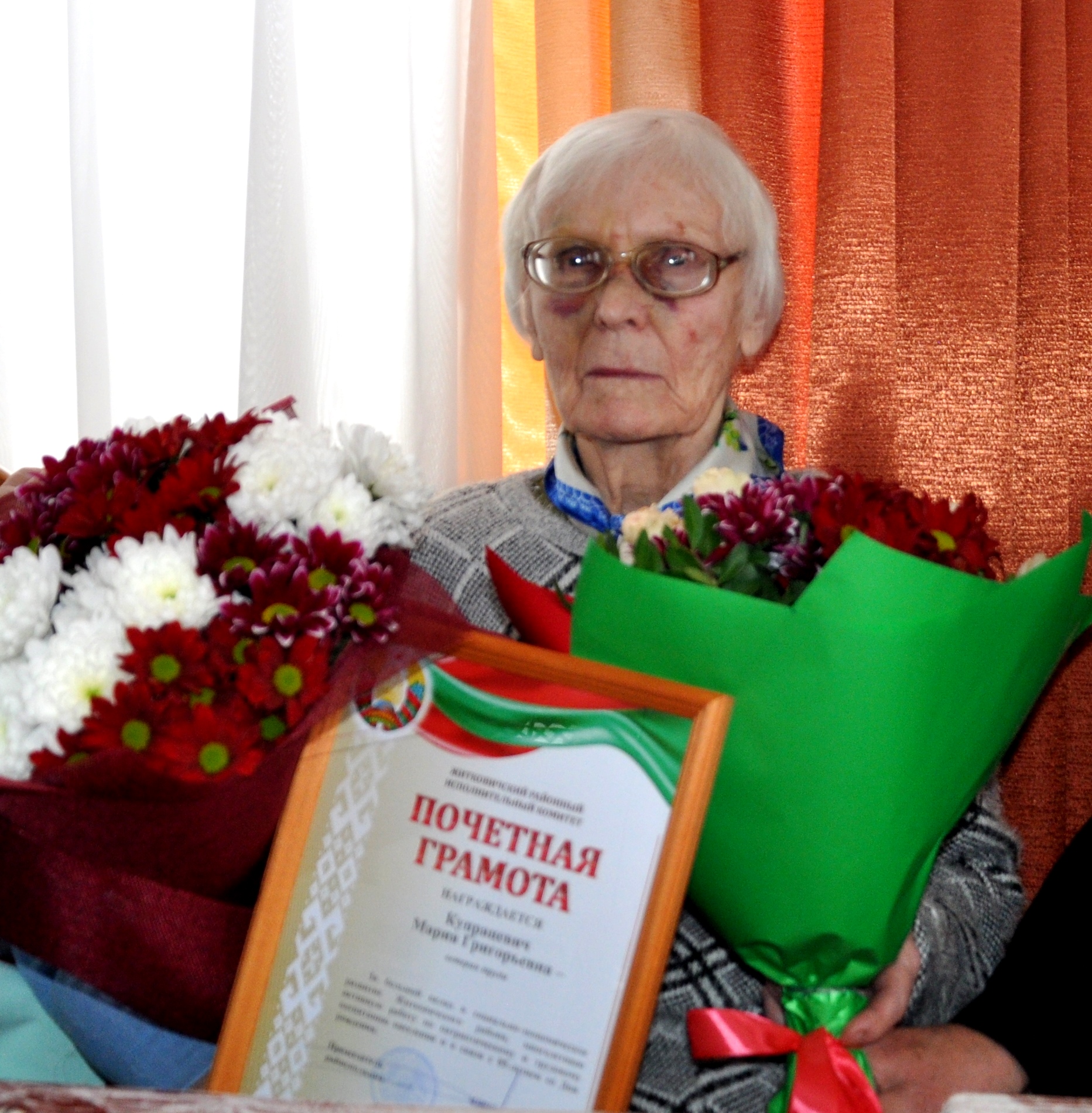 Впрочем, этот холодный январский день в кругу гостей, которых виновница торжества собрала в здании сельисполкома, согревало множество тёплых слов. А для сообщества бывших руководителей, объединяющего сорок человек, – отличный повод пообщаться. Каждый из этих достойных людей в разное время творил историю Житковщины. А Мария Григорьевна, вполне символично отмечающая 85 лет в год столетия района, – целая эпоха в судьбе колхоза имени Ленина. Кстати, его эстафету переняло ОАО «Призёрское Агро», руководитель которого Александр Барышников также поздравил бывшего главного зоотехника и на протяжении не одного десятка лет председателя.