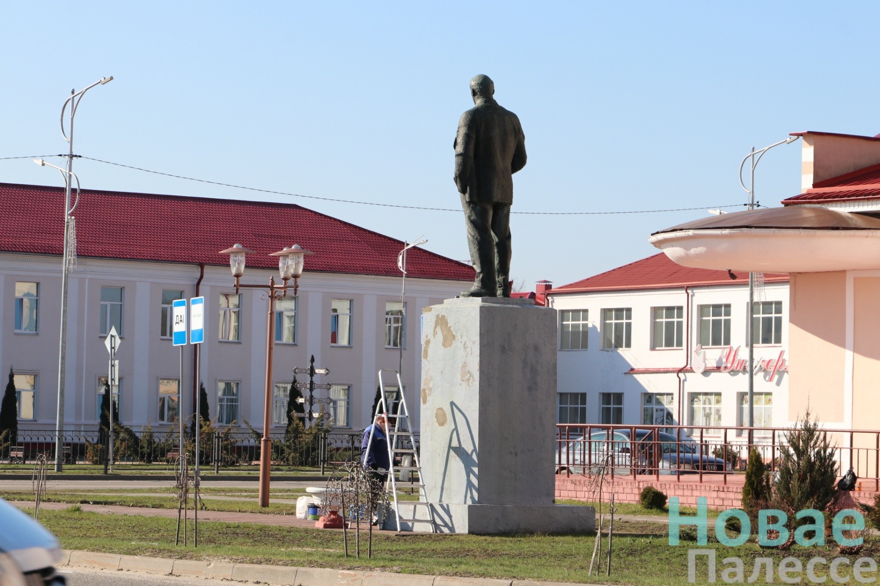 Работники коммунальной службы реставрируют постамент, с высоты которого уже много лет взирает на город лидер Октябрьской революции Владимир Ленин.